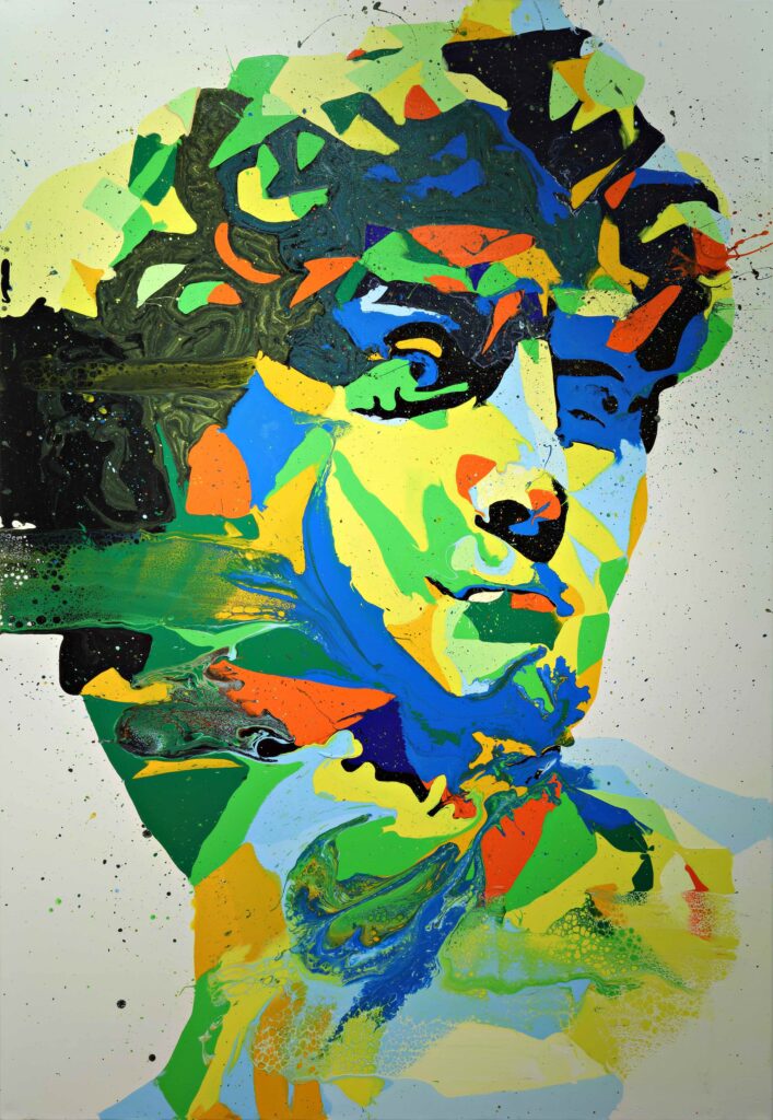 I personaggi iconici e la storia dell’arte sono i protagonisti di questa serie in chiave pop. Grazie alla particolare tecnica, creata dall’artista, che confina il colore per poi liberarlo, possiamo accedere a nuove possibilità attraveverso il cambiamento e la volontà di valorizzare la storia e i suoi grandi artisti.